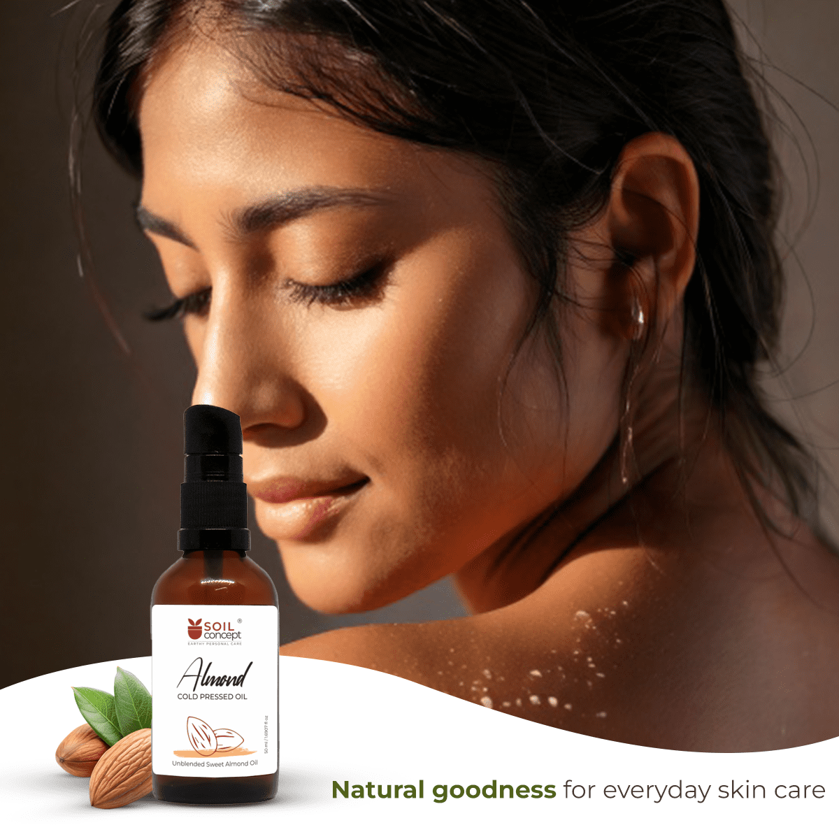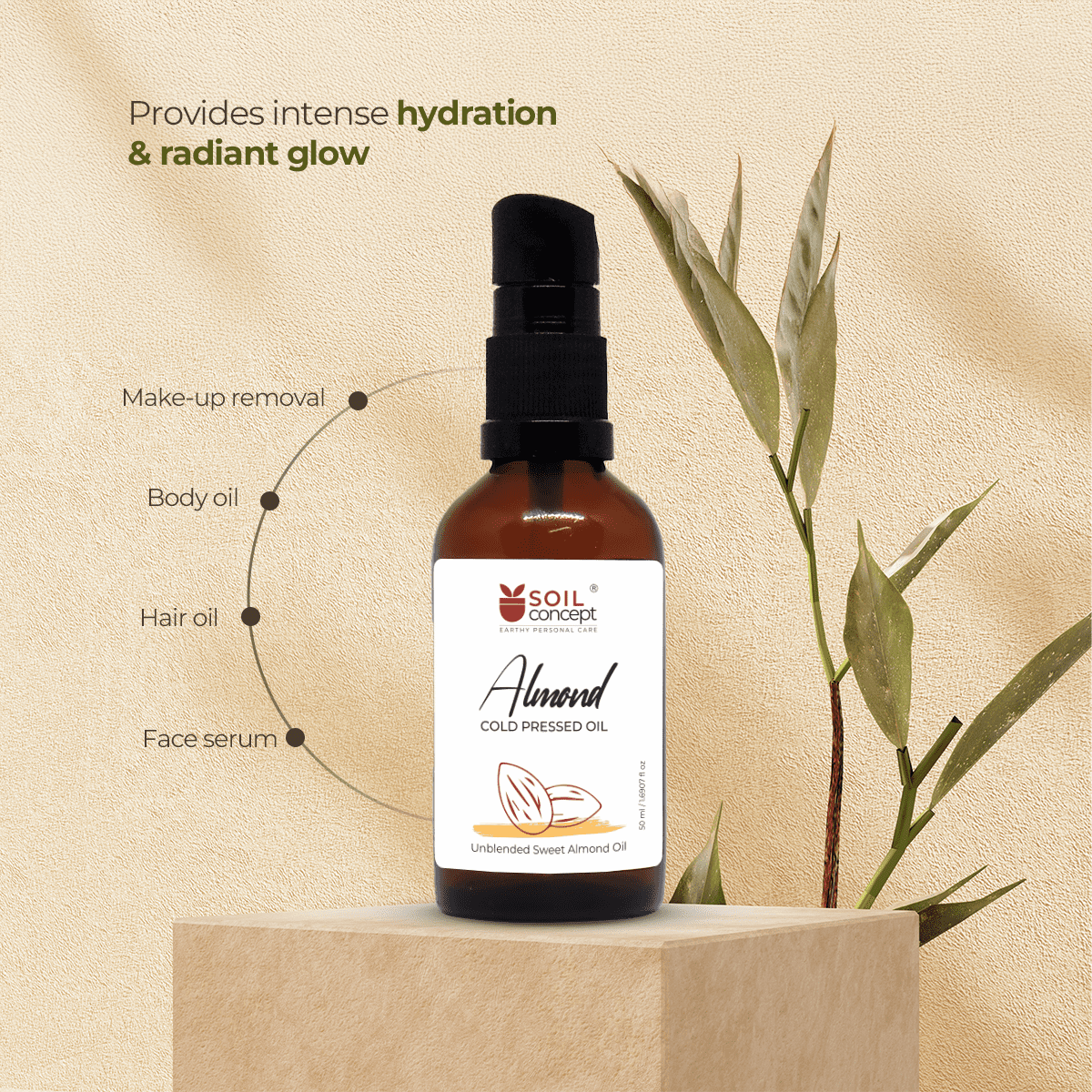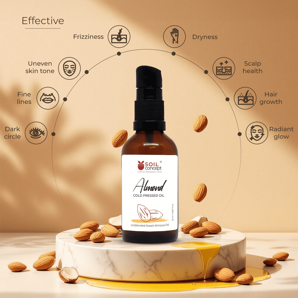 Almond cold-pressed oil is rich in vitamins and antioxidants, deeply nourishing and moisturizing the skin. It improves complexion, reduces dark circles, and strengthens hair, promoting overall health and radiance.